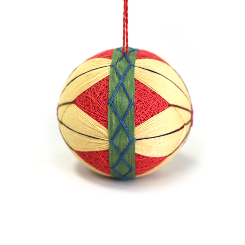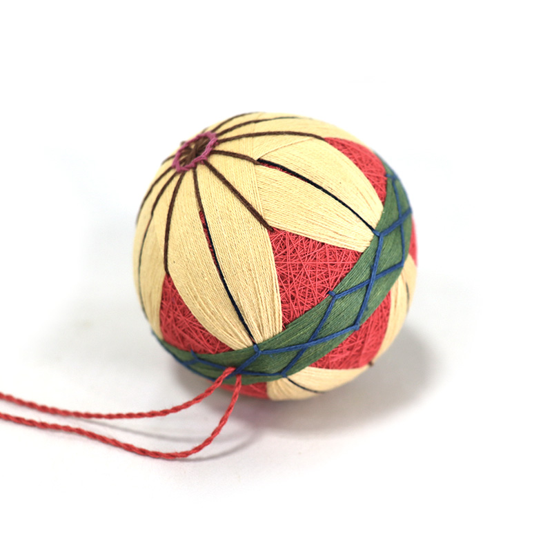 材質:草木染した木綿糸、もみ殻(まりの芯)