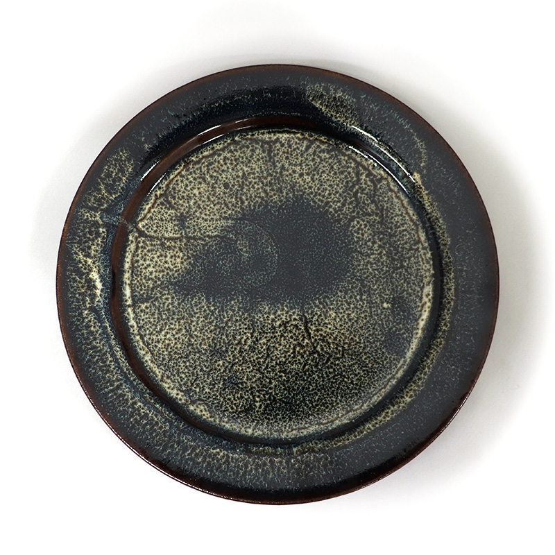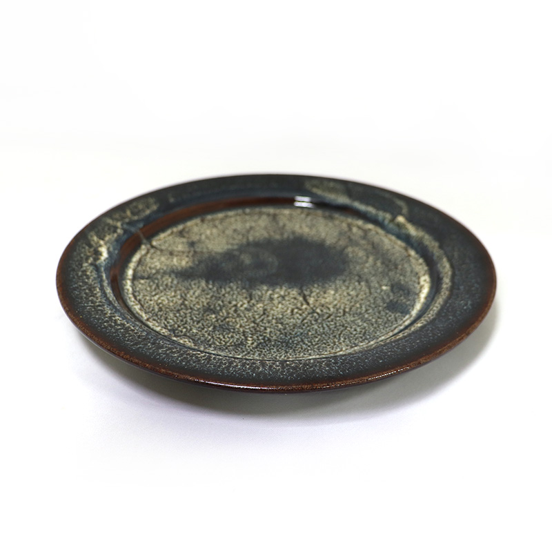 水の平焼伝統の青海鼠釉(あおなまこゆう)で仕上げられた七寸皿です。