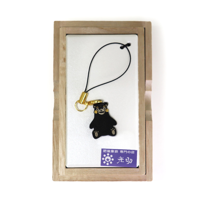 刀の鐔や火縄銃の装飾技法として生まれた熊本が誇る国指定伝統的工芸品「肥後象がん」の技で、人気のくまモンの柄が装飾されたストラップです。