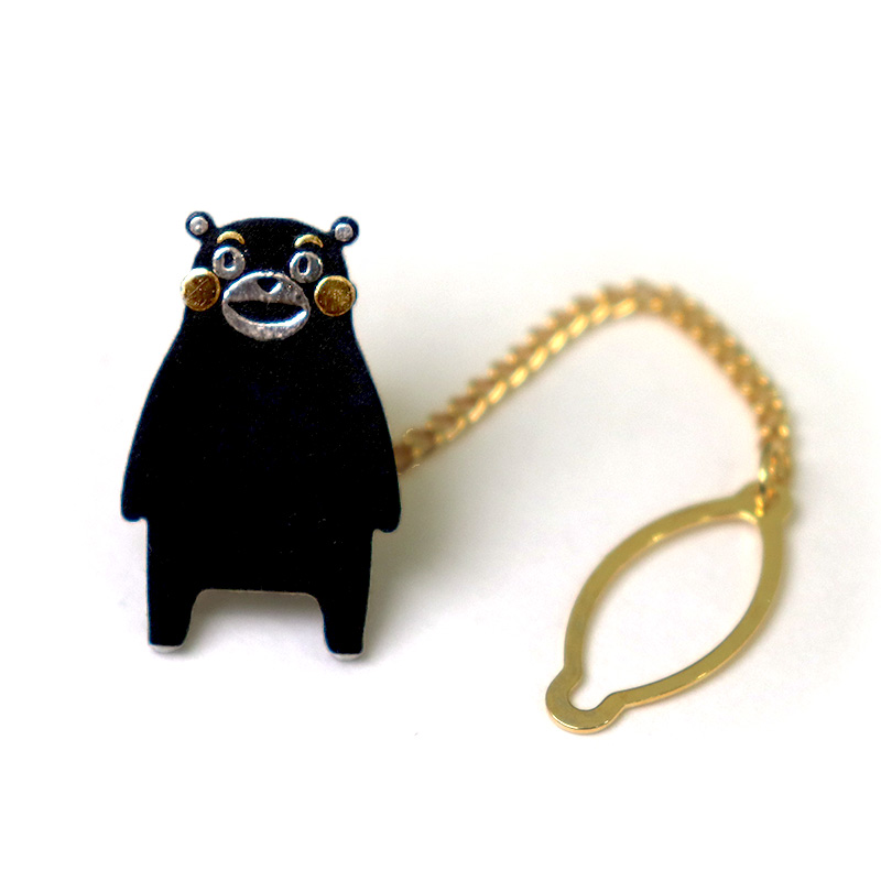 刀の鐔や火縄銃の装飾技法として生まれた熊本が誇る国指定伝統的工芸品「肥後象がん」の技で、人気のくまモンの柄が装飾されたピンバッジです。